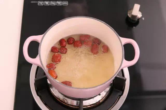 1.清水煮沸,加入冰糖和紅棗,煮15分鐘。