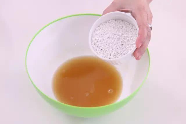 3.向紅棗糖水中加入馬蹄粉,攪拌均勻,然後把汁過濾備用。