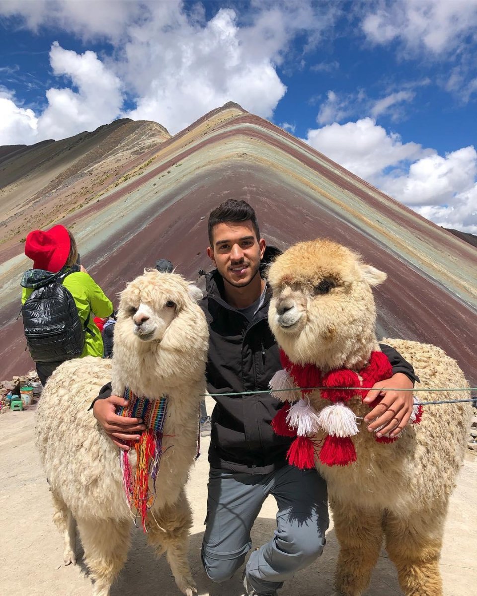 許多登上彩虹山的遊客都會和可愛的羊駝合照!