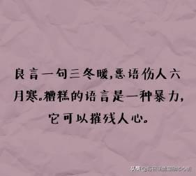 最後,俗話說"美言一句三冬暖,惡語傷人六月寒"