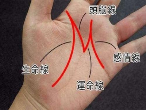 手上的四大紋路彙聚成"M"形,也就是四條線都非常均衡,