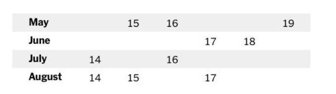 要解這道題需要將題中出現的10個日期畫成一張表格: