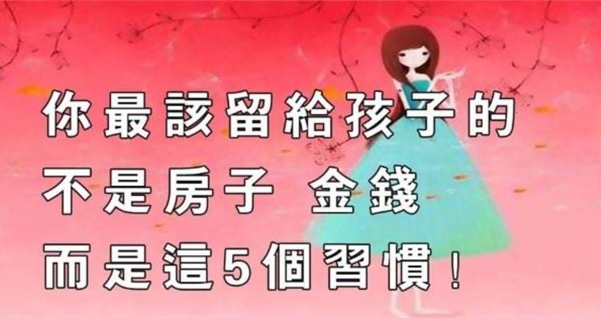 在家庭裡,父母能留給孩子最寶貴的財富不是一張存摺、一輛車子或者一張房產證,而是立足社會的教養。
