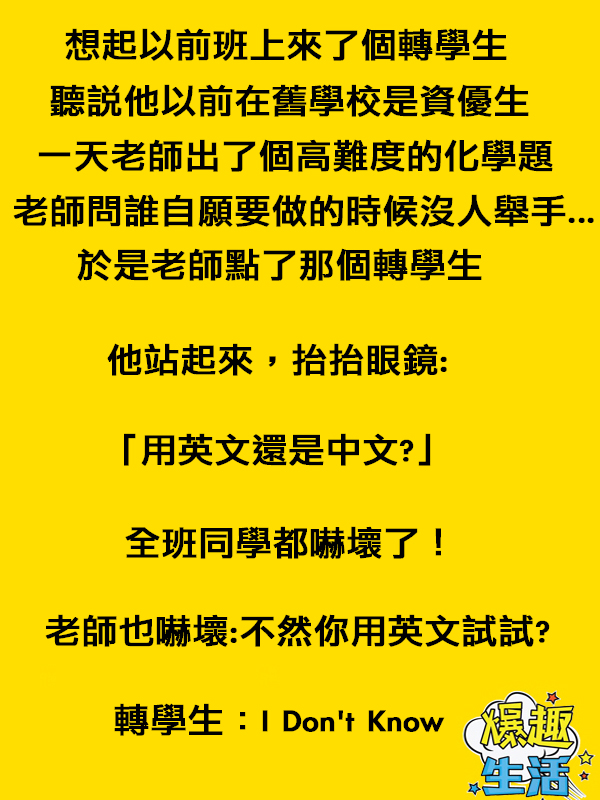 爆笑:班上來了個資優轉學生....他的回答讓大家都大笑