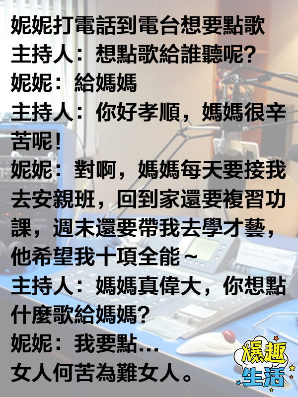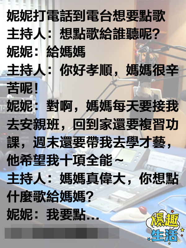 小萌妹打電話到電台點歌送給媽媽,但一說出歌名連主持人都傻住了~