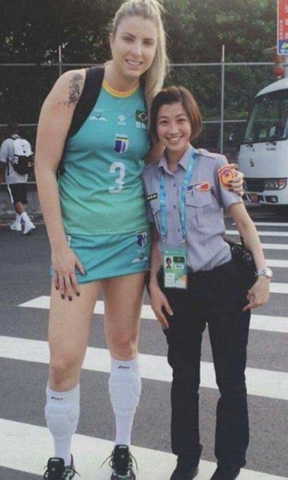 女警和一名巴西女選手合照(目測大約180cm以上)一手摟著嬌小的女警