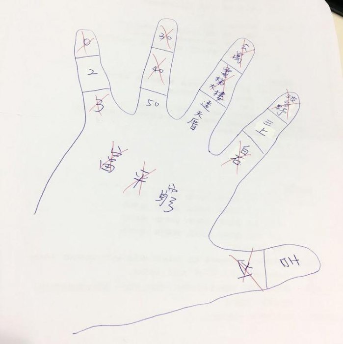 這時候需要一個同學或朋友,在旁邊幫你畫正字記號;開始喊停都由你決定,既然拇指最後算,那從食指開始。喊停後算有幾劃,從上到下開始數,一指進行兩次,最後剩下的那個就是答案。(重複劃到的話就重新來過)