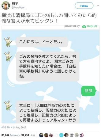 ▼「想要把老公丟掉」怎麼做?日本垃圾分類AI神回覆。(圖/翻攝自推特/@MuuMann)