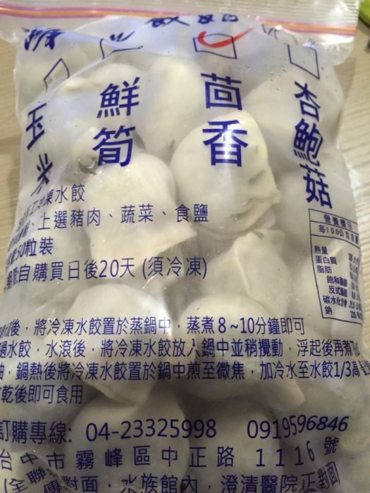 網友那天晚餐隨便吃了一些,後來有點餓了就想起冰箱還有一些冷凍水餃,於是開火煮了水, 水滾後便拿出了冰箱的冷凍水餃丟入, 然後去客廳看電視等水餃好。