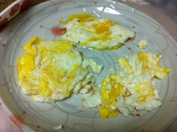 ↓↓↓ 為您完美示範,失敗的荷包蛋是長這樣的。