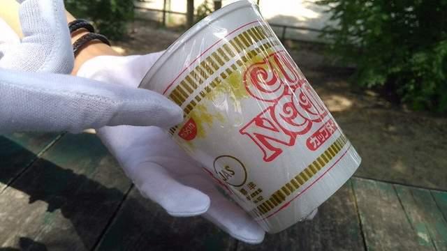 但裡面的杯麵包裝上已經出現了謎樣的泛黃痕跡......