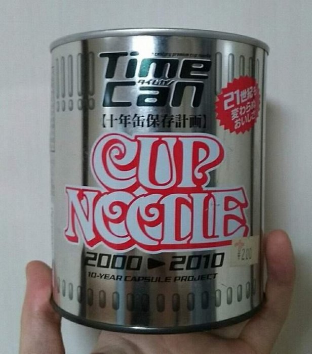 每次看到電影裡面那種青梅竹馬小時候一起埋時間膠囊相約長大後某天再來一起挖出來的情節,都會一邊覺得浪漫但又一邊忍不住懷疑「這麼多年的時間難道它都不會不見嗎?」ww類似這樣時間膠囊的商品最近因為一篇"試吃文"而引起注意。陪伴大家每個餓肚時光的日清杯麵,過去曾在20世紀的最後一年2000年8月推出一款號稱能放10年的商品「TimeCan(タイムカン)」,2010年的當時就已經有不少網友開箱試吃過這紀念商品,但如果放到17年後的現在那即食麵是否還能吃呢?