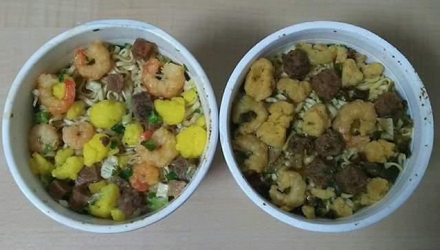 實際跟"新鮮"的日清杯麵相比,也不難看出它有如調色過一般的色差......