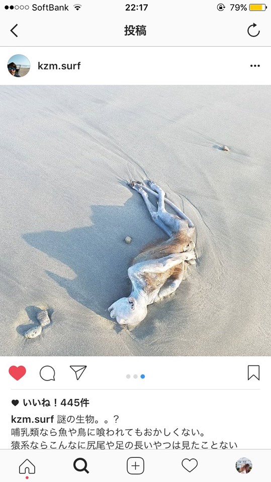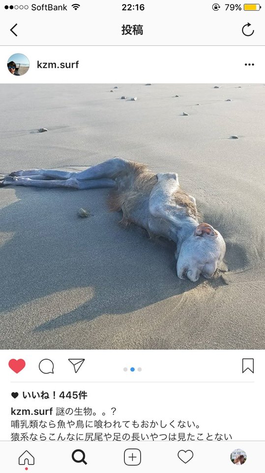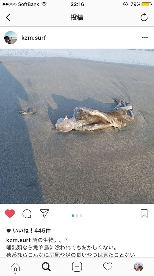 最近有日本網友在IG上分享了幾張照片,在靜波附近的海灘發現了一具神秘乾屍,他拿出手機拍照上傳之後,立刻引起瘋狂討論。