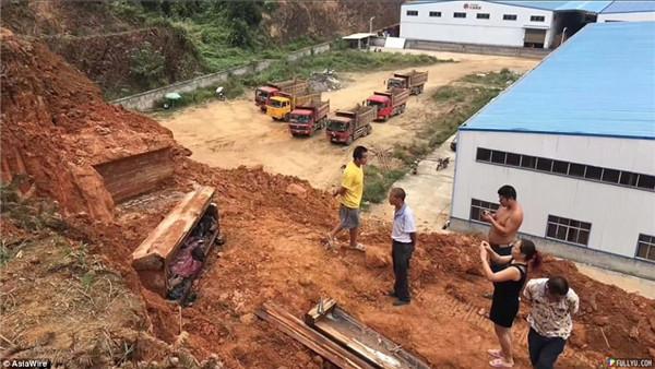 日前中國湖南安化一處工地開挖,工人意外挖出一座古墓,其中有一具400年男性古屍。