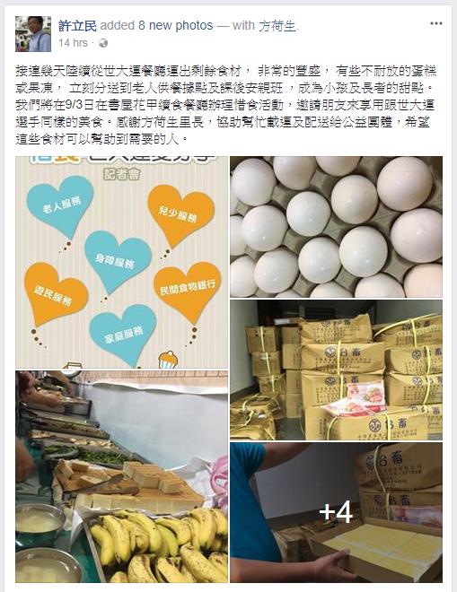 ▼台北市社會局長許立民昨天深夜在臉書PO文,表示這些剩餘食材已經趁新鮮分送至社福團體,被網友推爆。