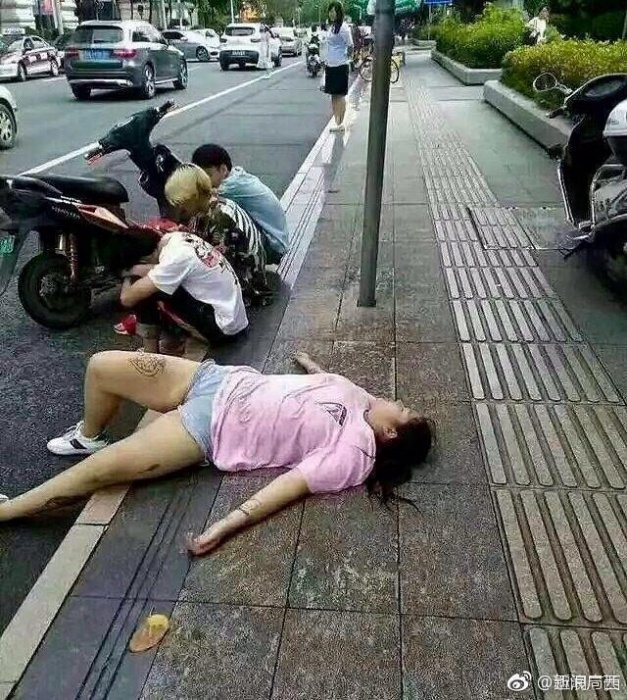 近日有大陸網友爆料,在中國廣西南寧民歌湖酒吧街附近,一名女生倒在路邊一整夜,看起來像是喝醉了。