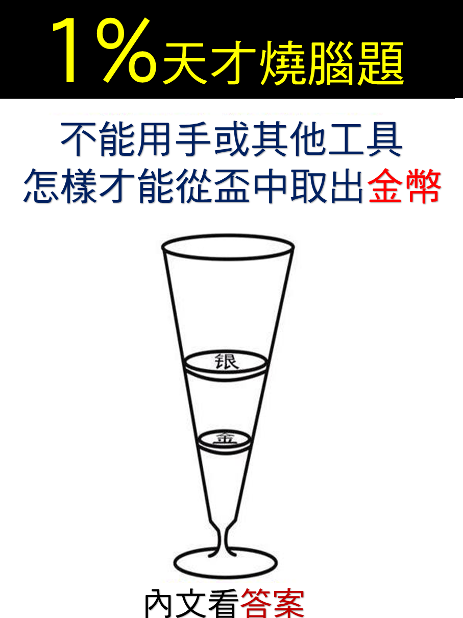 1%天才燒腦題! 不能用手或其他工具,怎樣才能從盃中取出金幣?