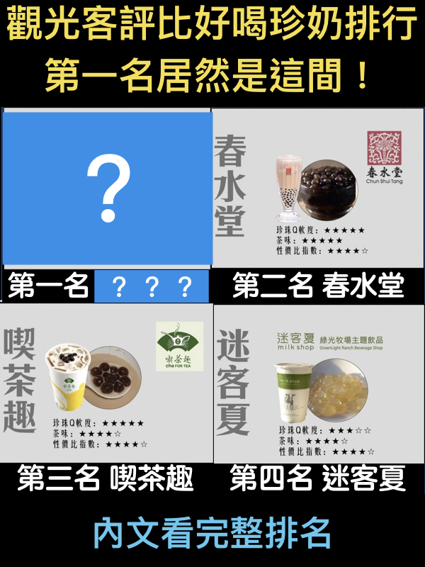 〖爆趣〗觀光客評比好喝珍奶排行 第一名居然是這間!