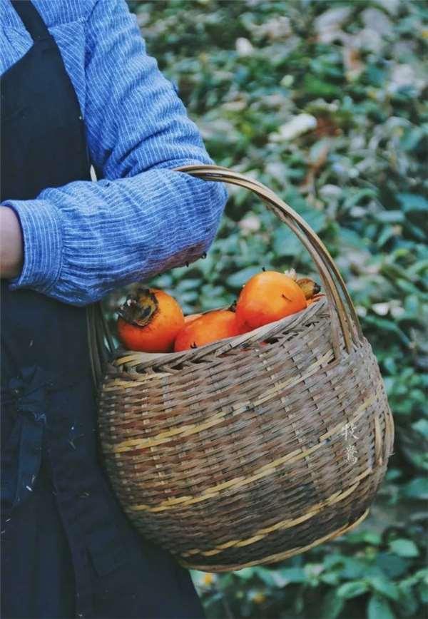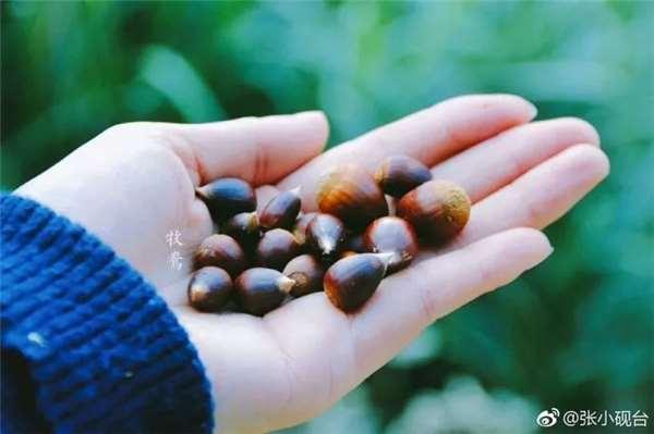 下午上山採野柿子和毛栗子