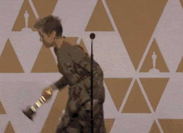 ▼第90屆奧斯卡,麥多曼俏皮地舉起小金人