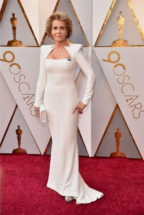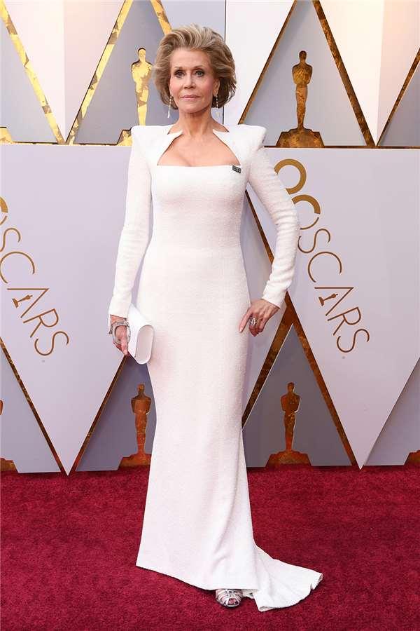 一席貼身剪裁的白裙,配上復古的捲髮和精緻的妝容,還有臉上歲月描摹的紋路,這就是珍·芳達,80歲依舊是最讓人難以移開目光的女人。