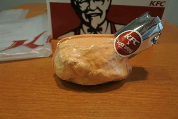 如過去肯德基為慶祝進入香港市場30周年,推出可食用的「炸雞味指甲油」,在紐西蘭也曾推出一款炸雞口味的香薰蠟燭,而在日本則推出了「炸雞口味入浴劑」,幾乎每款周邊商品都讓人直呼「狂」。