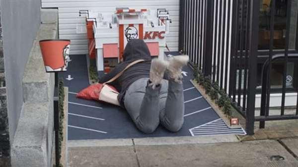 除了推出這些炸雞週邊商品外,肯德基也經常舉辦活動,像是曾在美國俄勒岡州的波特蘭市街角出現一間迷你肯德基,整間店小到如果不仔細看就會錯過,且客人想要購買的話只能趴在門口點餐。這間店可不單單只是擺設,裡面真的有工作人員,且還會提供炸雞、薯條、飲料等餐點,但份量也是迷你版的,不過這些迷你版餐點是免費的。