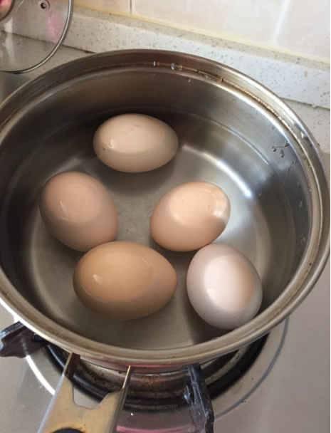 2.一定要用比較小的火慢慢地煮(中火最佳)。火大了,雞蛋急劇受熱,容易爆裂;火小了,就延長了煮雞蛋的時間,所以調中火最合適,這也煮出來的雞蛋不軟不硬特別好吃。
