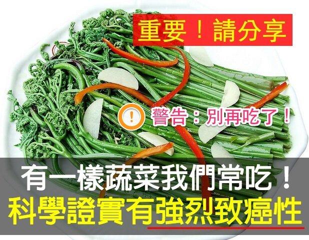 蕨菜,絕對不可以生吃。因為,新鮮蕨菜含有致癌物質。
