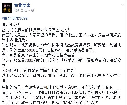 的公公都覺得不可能,還一口咬定這名網友外遇....