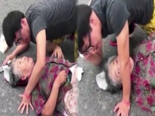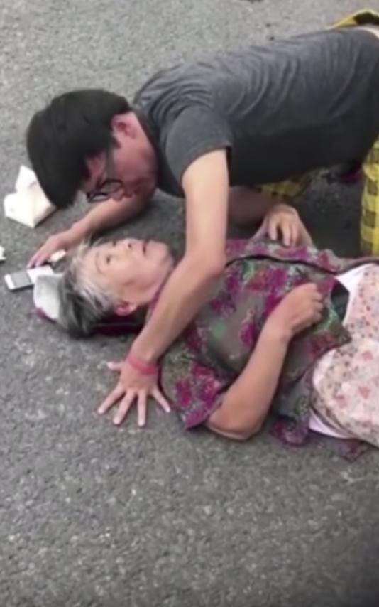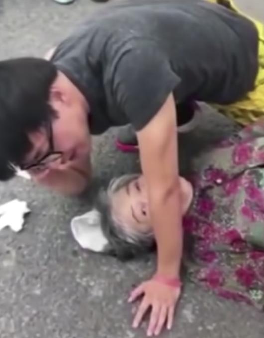 不過,最近大陸出現了一個事件,裡頭可見一名熱心男跪在地上幫助跌破頭的阿嬤,畫麵實在太感人了
